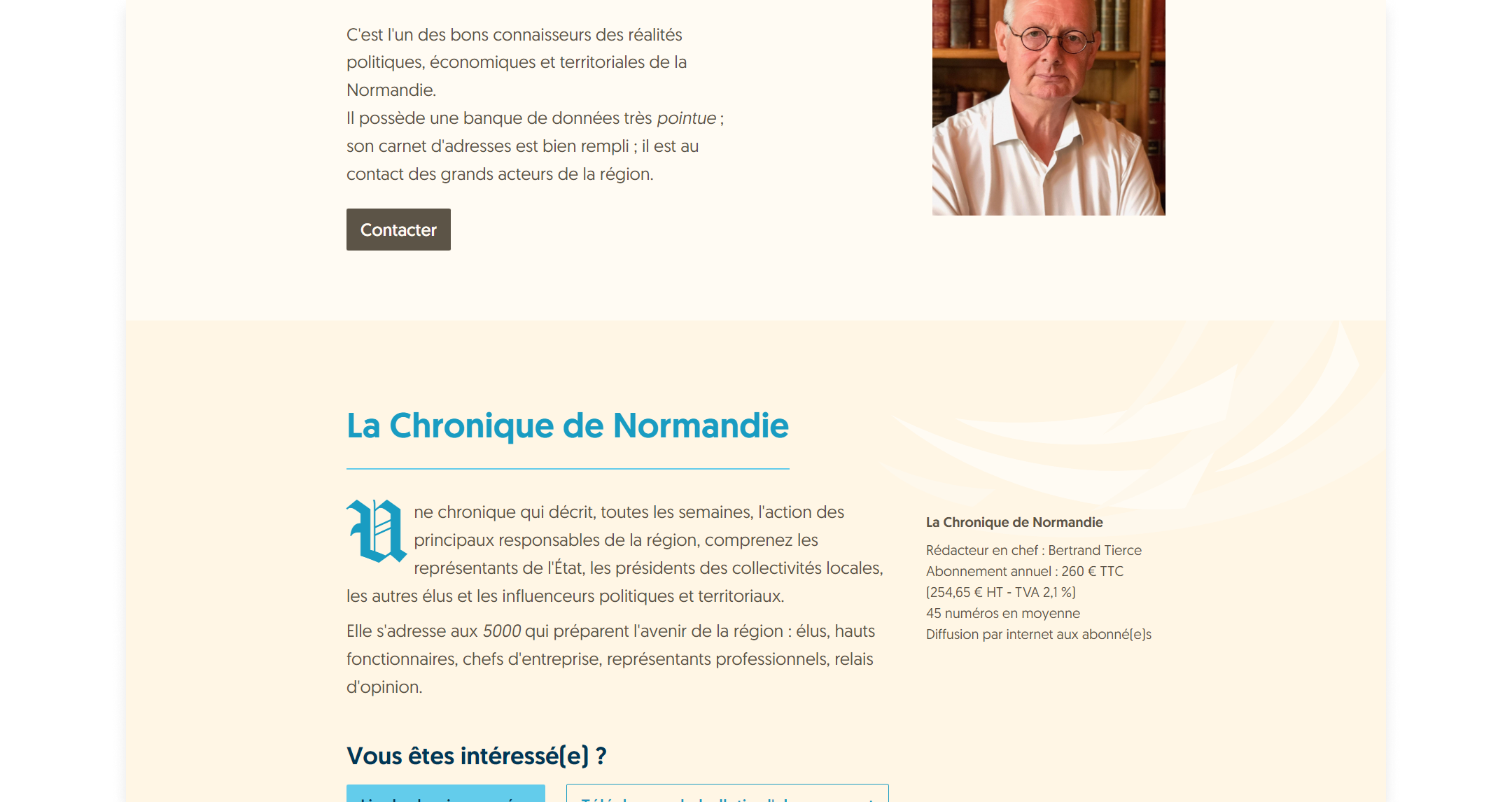 Créer un site vitrine pour Chroniques & Actions, la lettre pour tout savoir sur la Normandie, ses territoires et ceux qui les gouvernent.