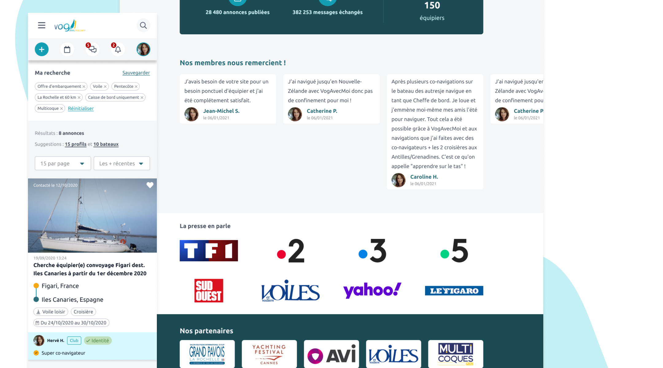 En tant que seul designer pour la refonte de VogAvecMoi, j'ai travaillé sur toute la partie visuelle de la version 3 du site de mise en relation.